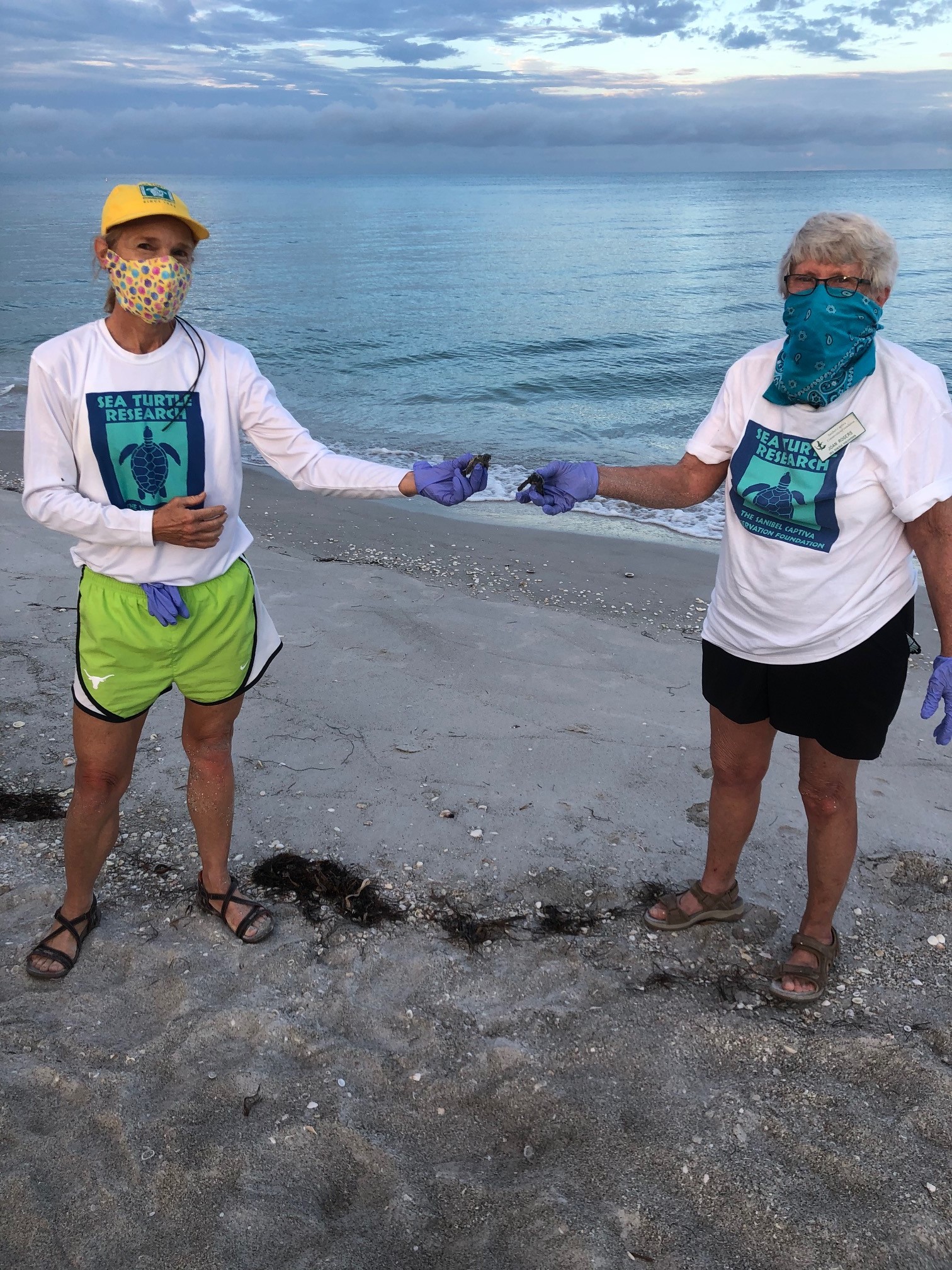 We are in the fourth month of sea turtle season and our 109 volunteers have already spent countless hours protecting sea turtles on Sanibel and Captiva. They wake up before dawn to patrol the beach for new crawls, check existing nests, and inventory nests after they hatch. A record-breaking year translates to more work and longer days, and our volunteers have enthusiastically taken on this increased workload. Pictured here are long-time turtle volunteers Kerry Salatino and Joan Rogers.