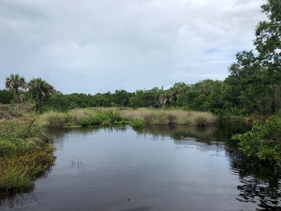 Water levels in the freshwater basins on Sanibel are extremely high right now, as you can see in this photo of the trail into the Erick Lindblad Preserve from SCCF’s main parking lot at the Nature Center.