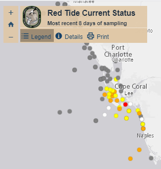 Karenia brevis, still exists in Southwest Florida based on sampling conducted over the past eight days.