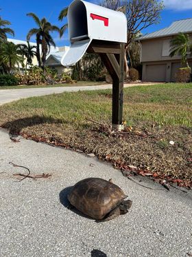 Gopher tortoises have been seen walking around looking for live grasses and sprouts of other plant species. Many plant species are beginning to regrow leaves and sprout from the ground; however many species will not be successful for a period of time due to the saltwater intrusion in the soil. Pictured here is a gopher tortoise spotted on Sanibel by Virginia Lattner.