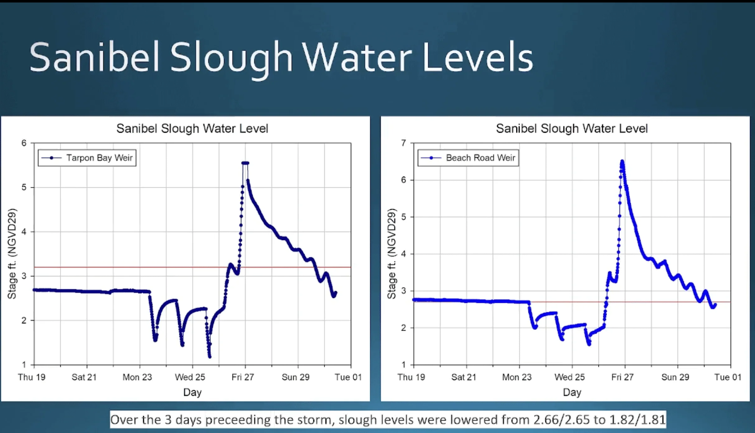 “As you can see from the data that was presented, this was a surge event, not a rainfall driven stormwater event,” said Evans. “The surge from the Gulf and the bay overwhelmed the system with water, driving water into the slough and elevating water levels.”