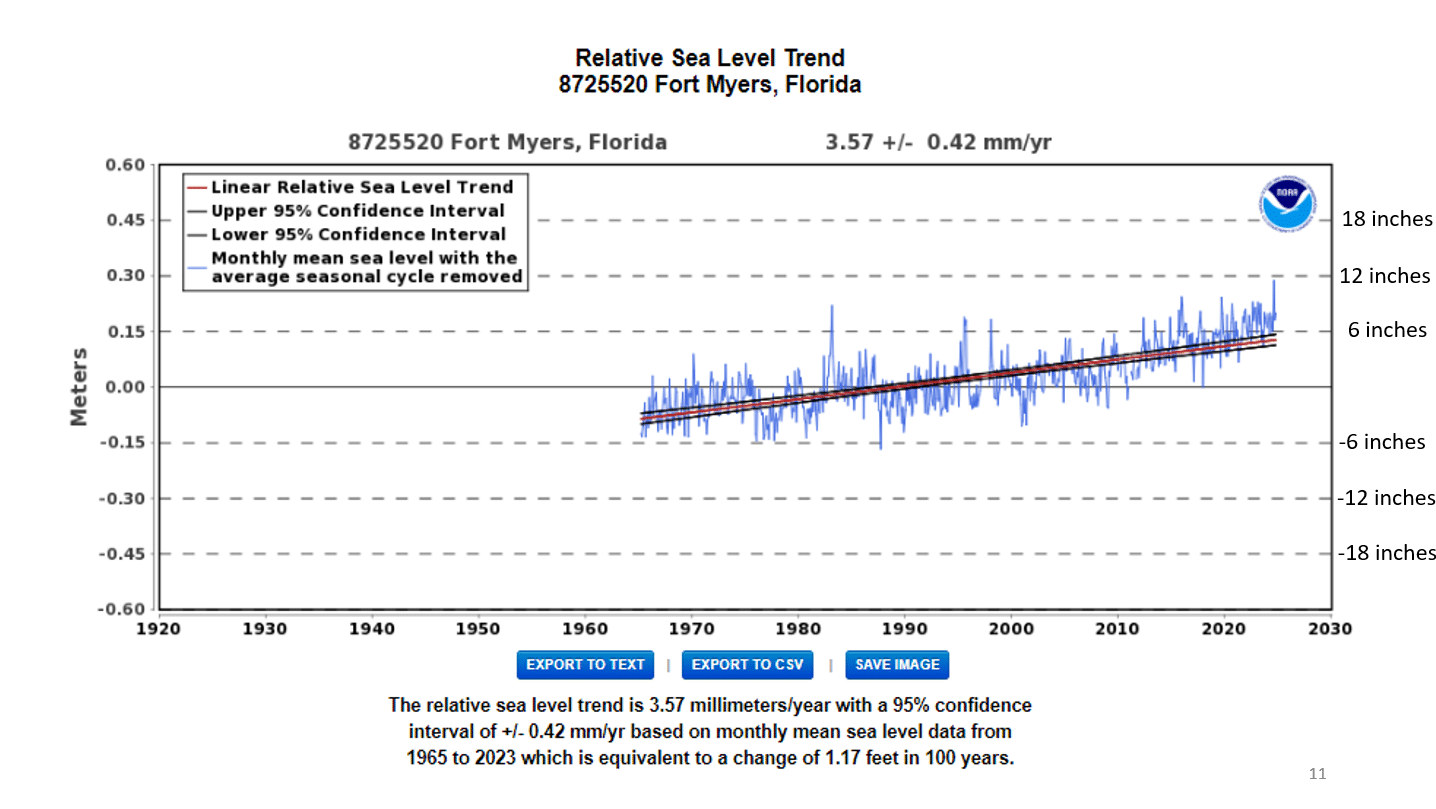 Data from the National Oceanic and Atmospheric Administration suggest that sea level in our region has risen as much as 0.8 feet since 1985, meaning there’s less capacity for the ground to soak up water after a rain event or storm surge, Thompson said. This also means that — as barrier islands at low elevation — Sanibel and Captiva are increasingly susceptible to saltwater intrusion.