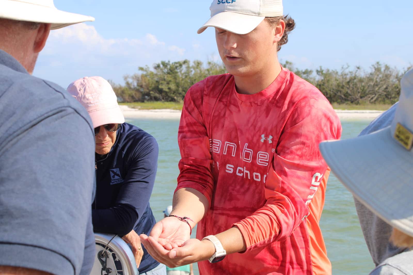 After learning about our coastal environment on land, islanders boarded one of Captiva Cruises’ motorized catamarans to get an up-close look at Pine Island Sound. Residents birded from the boat, guided by an SCCF shorebird biologist, followed by a lesson on marine creatures found in seagrass beds by a Sanibel Sea School Marine Science Educator.