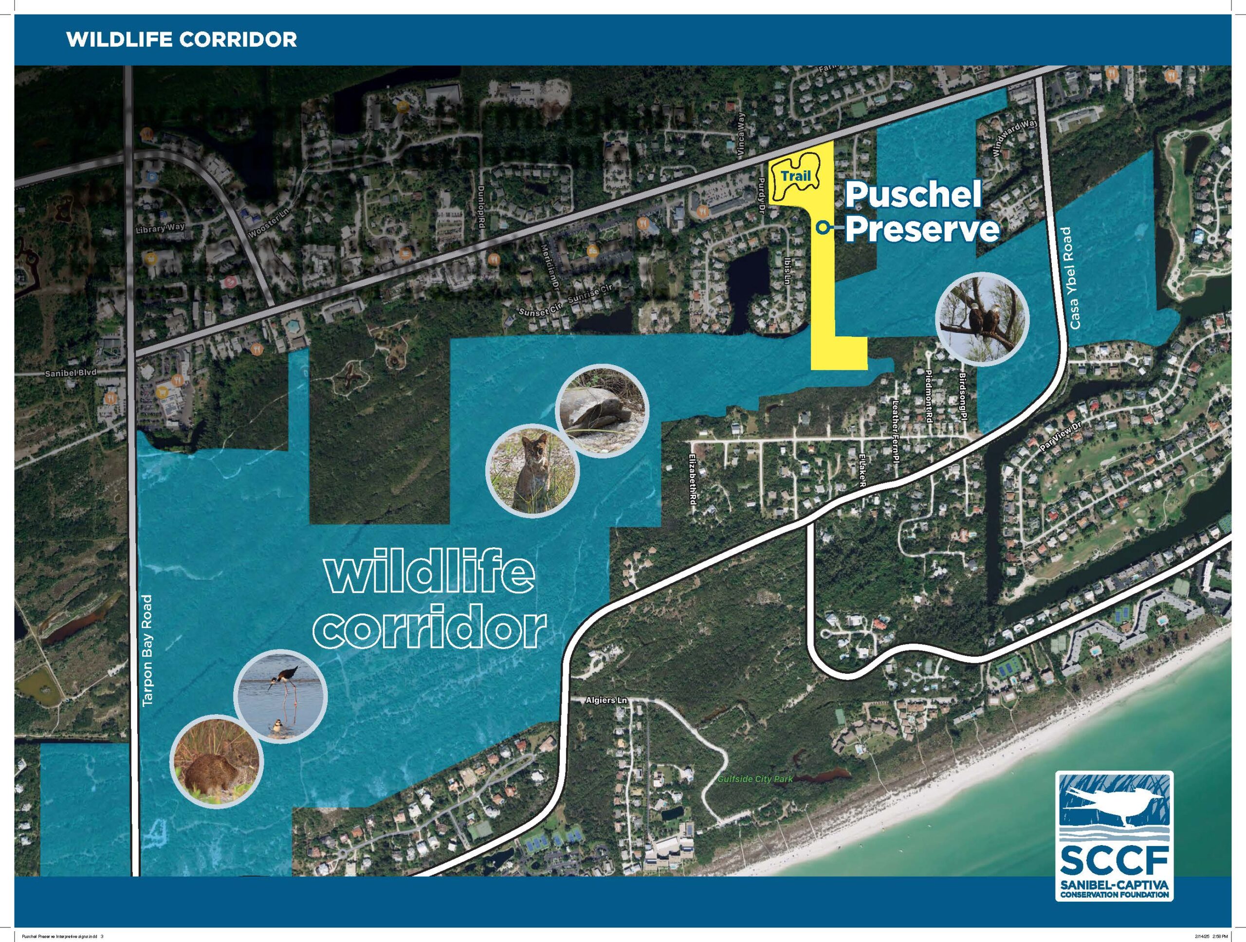 Located on the south side of Periwinkle between Purdy Drive and Martha’s Lane, the preserve completes approximately 385 acres of open space and a wildlife corridor of almost 1 1/2 linear miles between Tarpon Bay Road and Casa Ybel Road.