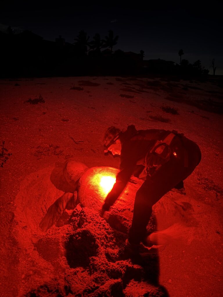 From May 1 through July 31, the team conducts nightly beach patrols on Sanibel Island to intercept, tag and identify, and monitor nesting sea turtles.