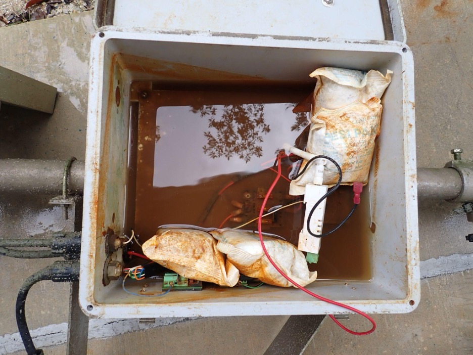 The water quality sensors are designed to be submerged and were largely unharmed. Unfortunately, the meteorological and solar power system were unsalvageable due to flooding, and the structure on which they were mounted was damaged slightly.